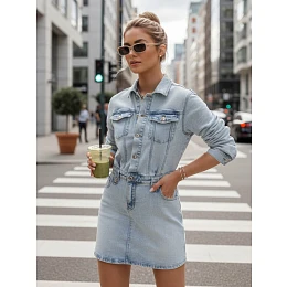 Džínové mini šaty, které zvýrazní vaši ženskou siluetu a dodají ležérní šik nádech. Knoflíky po celé délce umožňují volně upravit výstřih. Model je vybaven klasickými kapsami. Nastavitelné manžety umožňují upravit rukávy podle vašich preferencí. Poutka v pase umožňují přidat pásek pro větší efekt. Ideální pro ležérní vzhled, v teplých jarních dnech.