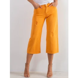 Oranžové roztřepené džíny.