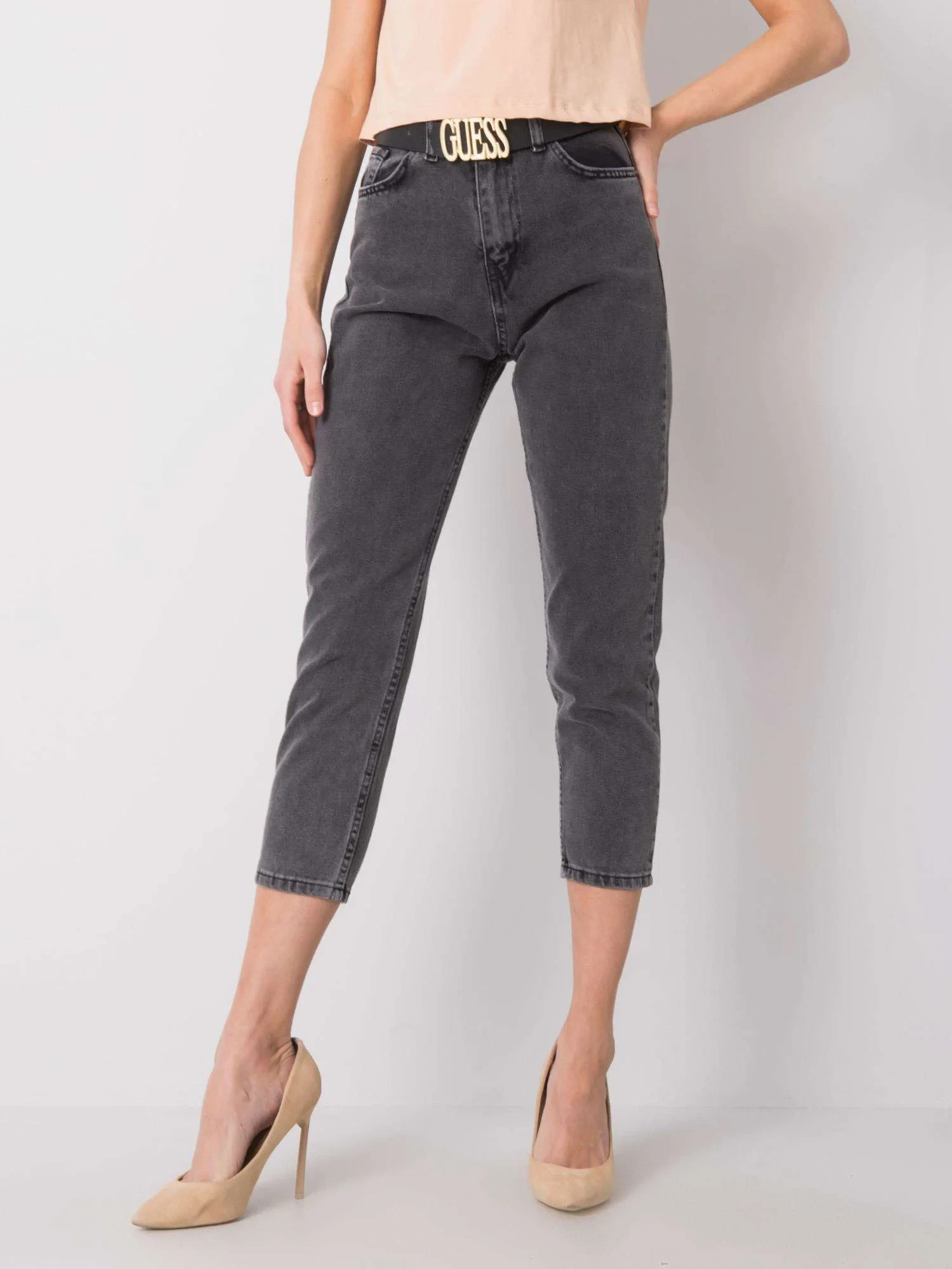 RUE PARIS Tmavě šedé džíny s vysokým pasem.