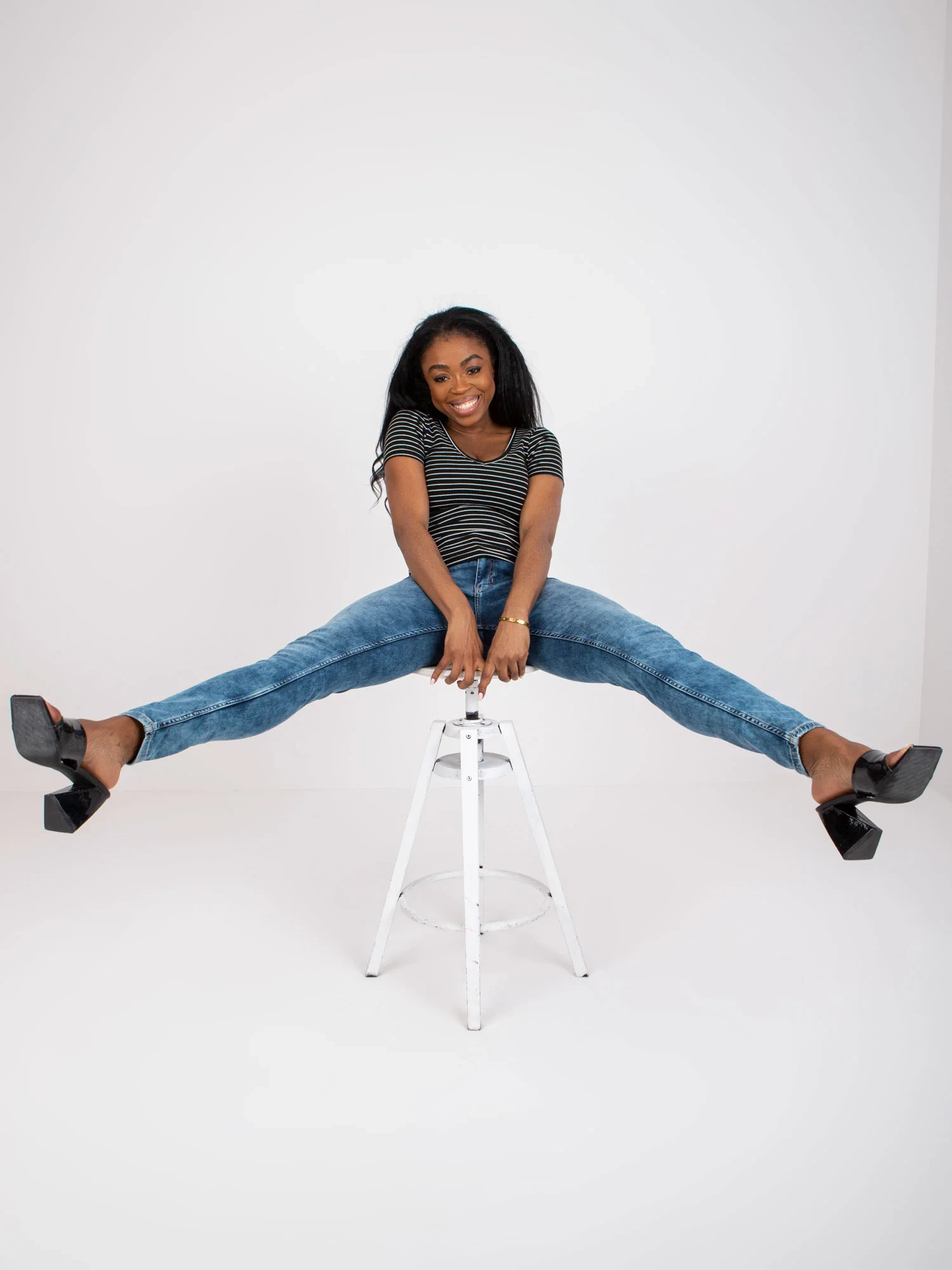 Modelka má na sobě velikost S. Rozměry modelky: výška 169 cm, poprsí 86 cm, pas 67 cm, boky 88 cm.