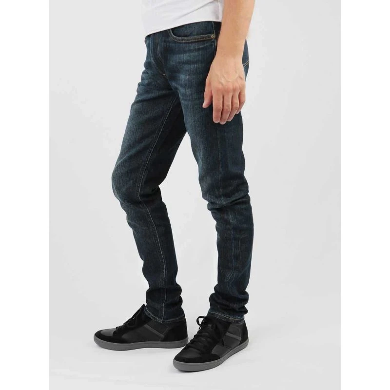 Pánské džíny se zúženou nohavicí, velkými kapsami vpředu, menšími kapsami vzadu a vsadkou s logem Lee na zadním pásu.