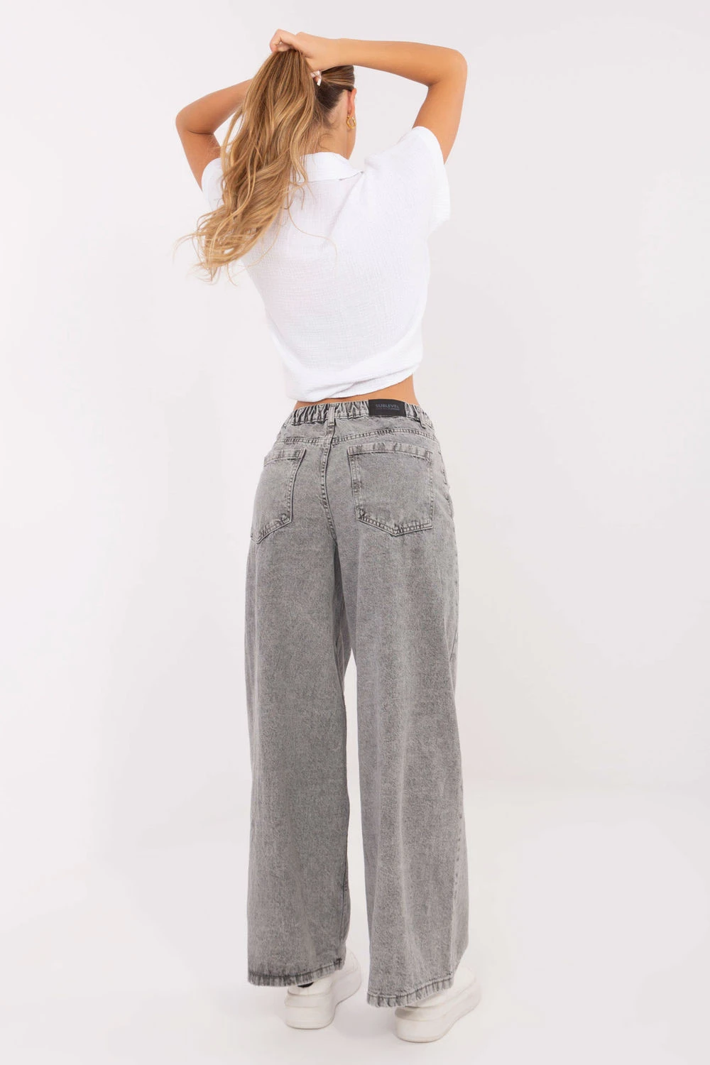 Dámské džíny ve stylu palazzo jsou ideální nabídkou na každý den pro milovnice pohodlí a moderních střihů. Vyrobené z vysoce kvalitní bavlny, poskytují pohodlí nošení a odolnost. Model s ležérním charakterem, s vysokým pasem, který zdůrazňuje pas a opticky prodlužuje nohy. Má vložené kapsy vpředu a otevřené kapsy vzadu, co dodává funkčnost a klasické dokončení. Široké nohavice ve stylu palazzo dodávají postavě lehkost a zapadají do současných trendů. Džíny se zapínají na zip a knoflík, co zajišťuje stabilní a pohodlné přizpůsobení. Model s hladkým vzorem, ideální pro každodenní stylizace, skvěle vypadá jak s tričkem, tak s elegantní blůzou.