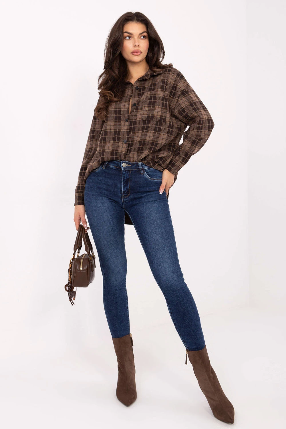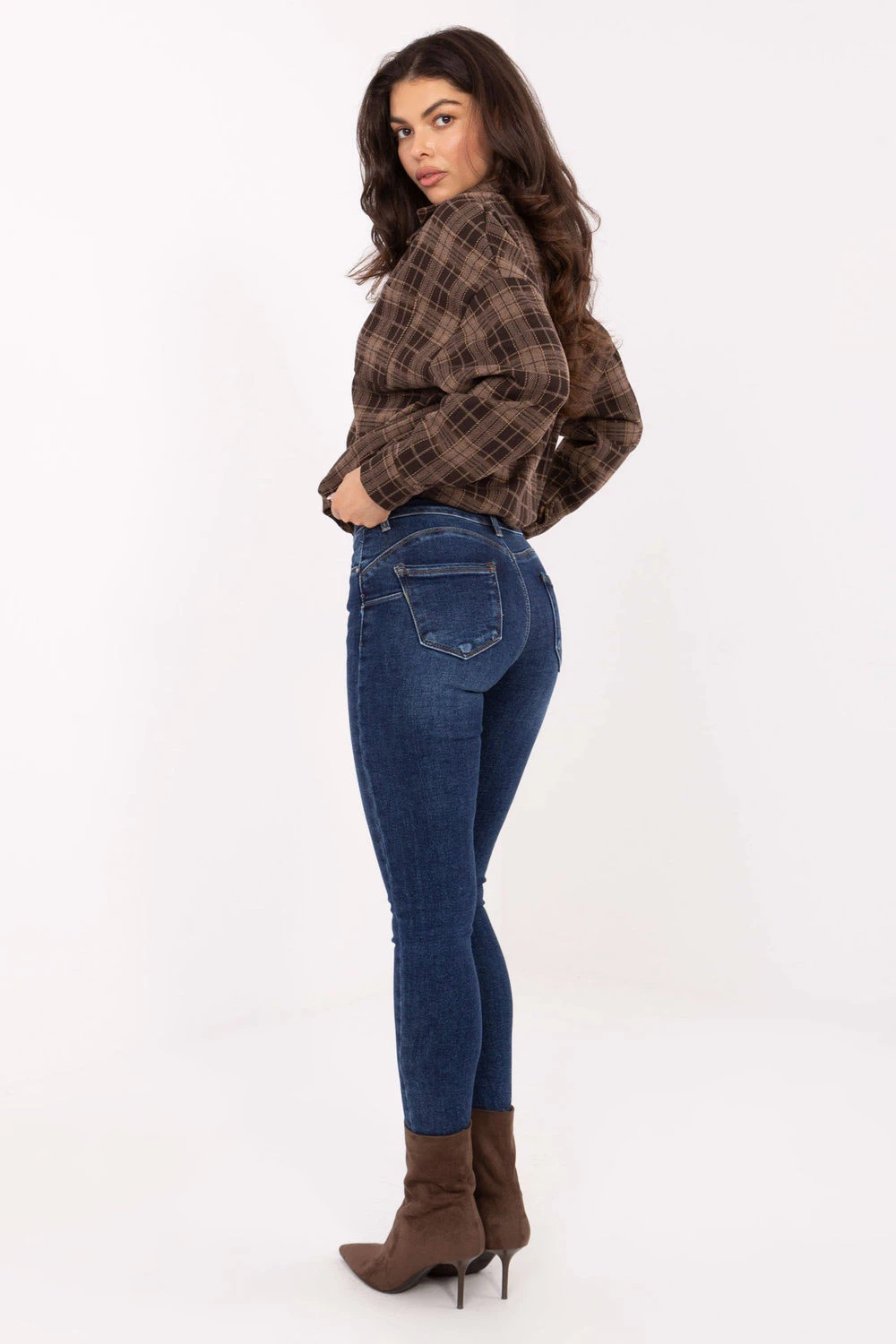 Tyto dámské skinny fit džíny jsou ideálním spojením ženského stylu a každodenní pohodlí. Vyrobené z vysoké kvality směsi bavlny, elastanu a polyesteru, jsou elastické, měkké a skvěle se přizpůsobují postavě, zdůrazňujíce její přednosti. Model s průměrným (regulárním) pasem zajistí pohodlí nošení a ideální přizpůsobení v pasu, zúžené nohavice typu skinny krásně modelují nohy, dodávajíce jim štíhlý vzhled. Další výhodou je push-up efekt, který jemně zvedá a zdůrazňuje zadek, zaručující atraktivní, ženský střih. Džíny mají zapínání na zip a knoflík, kapsy vpředu a otevřené kapsy vzadu, což z nich činí jak stylové, tak praktické. Je to model, který se skvěle hodí do každodenních, casualových stylizací, skvělý jak do práce, tak na setkání s přáteli.