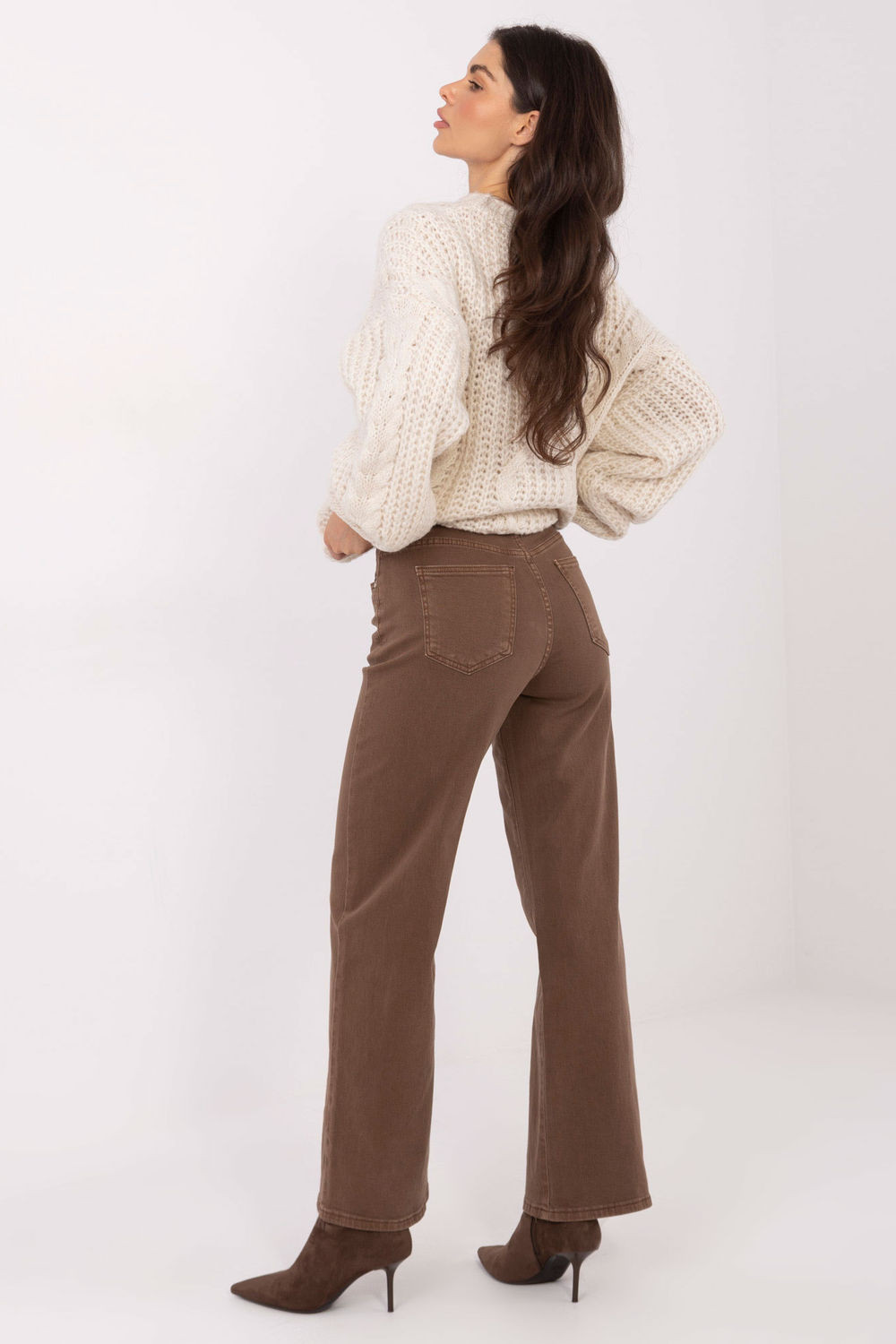 Dámské džíny se rovnými nohavicemi jsou klasickým modelem ve stylu casual, ideální na každodenní příležitosti. Vyrobené z vysoce kvalitní bavlny s přídavkem elastanu poskytují pohodlí, odolnost a lehkou pružnost, díky čemuž se perfektně přizpůsobí postavě. Model má vysoký pas, který zdůrazňuje pas, a rovné nohavice dávají kalhotám nadčasový a elegantní charakter. Hladký vzor činí džíny univerzálními a snadno se kombinují s různými kousky šatníku. Kalhoty se zapínají na zip a knoflík, mají kapsy na přední straně a otevřené kapsy na zadní straně, což zvyšuje jejich funkčnost. Nadčasové, pohodlné a praktické, ideální pro každodenní outfity.