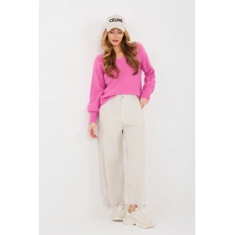 Dámské džíny typu wide leg jsou stylovým a pohodlným návrhem na každý den, ideální pro každodenní módní stylizace. Hladký střih a široké nohavice jim dodávají moderní, volný charakter a zajistí pohodlí při nošení po celý den. Kalhoty skvěle ladí jak s klasickým tričkem, tak s elegantní halenkou. Model je vyroben z vysoce kvalitní bavlny, která zaručuje odolnost a pohodlí při nošení. Vysoký pas krásně zdůrazňuje pas a tvaruje postavu, a elastický pásek na zadní straně pasu zajišťuje lepší přizpůsobení a další pohodlí. Klasické zapínání na zip a knoflík a boční kapsy zvyšují funkčnost kalhot. Ozdobná krajková výšivka na spodní části nohavic představuje subtilní, ženský akcent, který tento model vyzdvihuje v porovnání s klasickými džínami.
