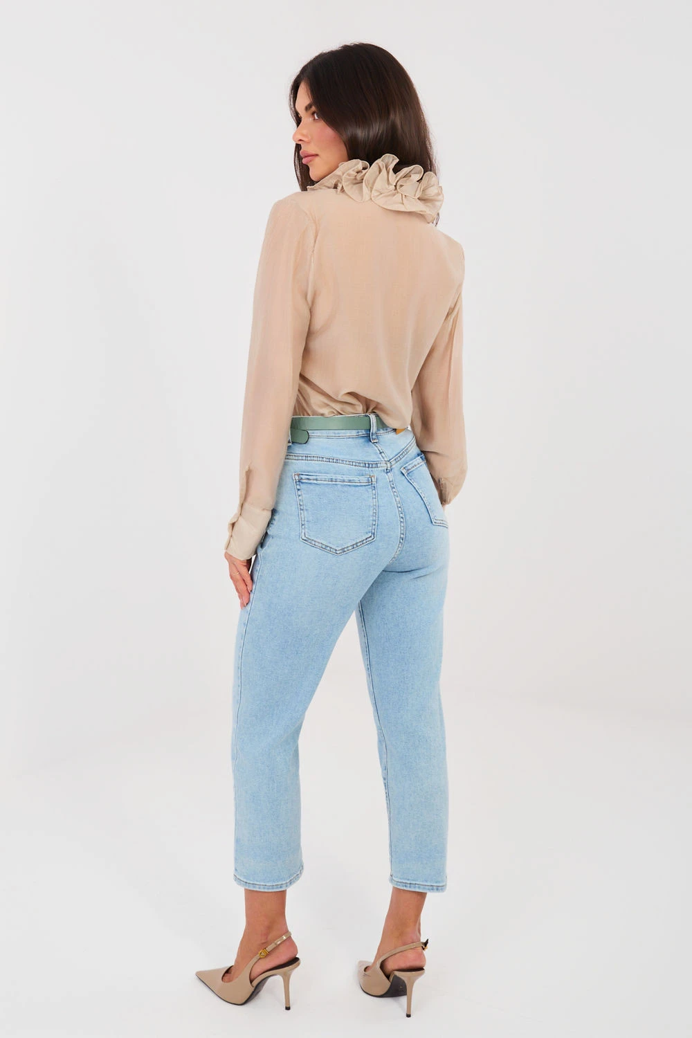 Elegantní dámské džíny typu mom jeans jsou nadčasovou nabídkou pro ženy, které ocení pohodlí a módní, ležérní vzhled. Model s vysokým pasem krásně zdůrazňuje pas a opticky prodlužuje nohy, zajišťující zároveň pohodlí po celý den. Džíny mají sevřené nohavice, které dodávají siluetě lehkost a skvěle ladí jak s sportovní obuví, tak s elegantními botami. Klasické vložené kapsy zvyšují funkčnost modelu, a zapínání na zip a knoflík zaručuje pohodlí a dobrou vestavbu. Model je vyroben z vysoce kvalitní směsi bavlny, polyesteru a elastanu, díky čemuž je materiál příjemný na dotek, trvanlivý a jemně elastický, ideálně se přizpůsobuje postavě. Hladký vzor dělá džíny mimořádně univerzální, skvěle se hodí do každodenních stylizací i do práce. Je to must-have v každé šatníku ženy, která ráda kombinuje pohodlí s módním stylem.