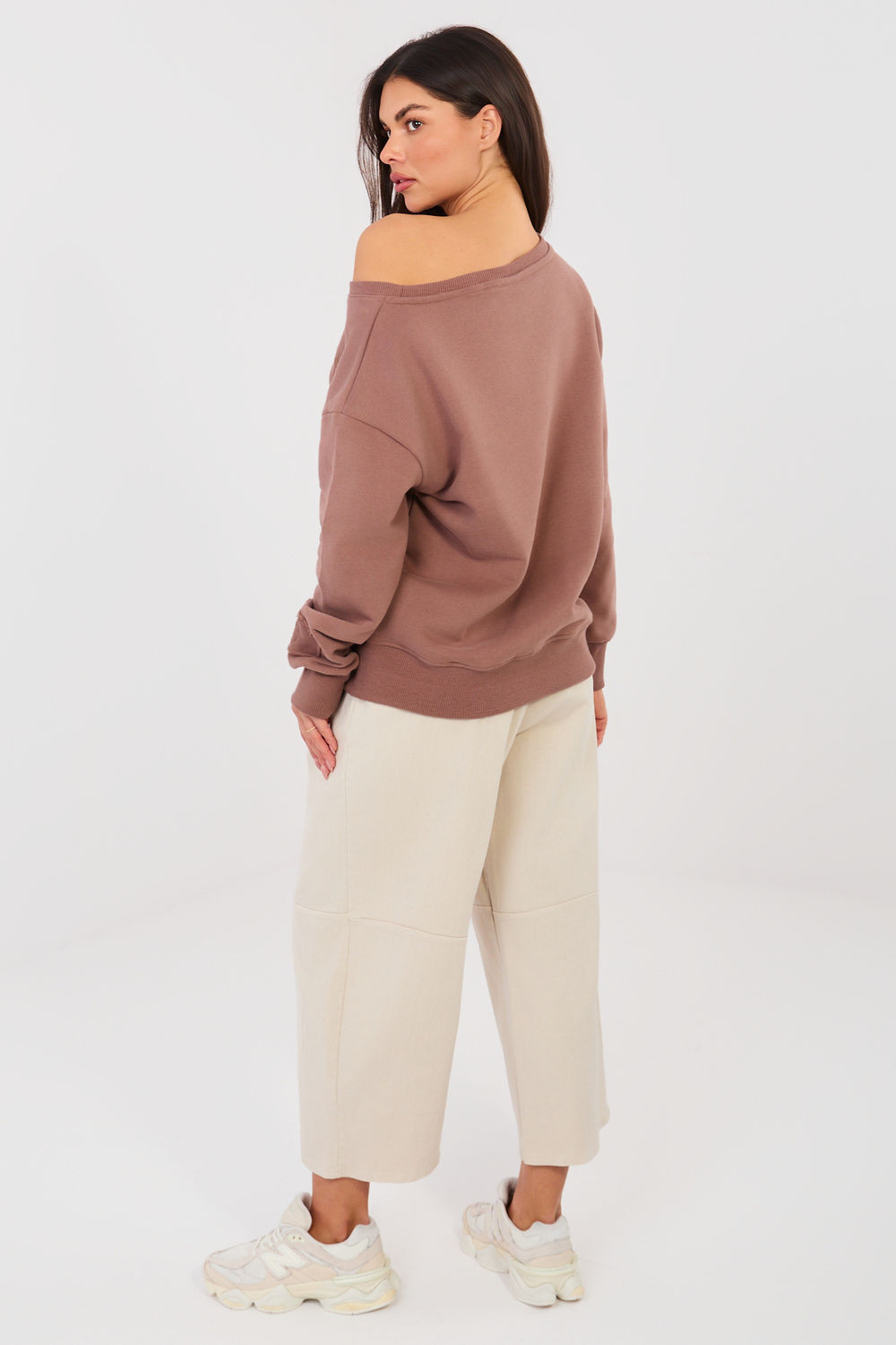 Moderní dámské džíny typu wide leg, které spojují pohodlí s moderním stylem. Vyrobené z vysoce kvalitní bavlny s přídavkem elastanu, zaručují pohodlí nošení a volnost pohybu po celý den. Model má vysoký pas a vsazenou gumu v pase, díky čemuž se dokonale přizpůsobí postavě bez nutnosti zapínání. Záhyby na přední straně přidávají eleganci a opticky prodlužují nohy. Široké nohavice zdůrazňují módní charakter kalhot a zajišťují lehkost stylizace. Kalhoty jsou vybaveny bočními kapsami na zip a zapínacím páskem, který je praktickým a stylovým doplňkem. Hladký vzor z něj činí model vhodný jak pro každodenní stylizace, tak i do práce v casualovém provedení. Univerzální, pohodlné a stylové - ideální základ pro mnoho outfitů.