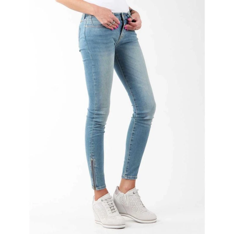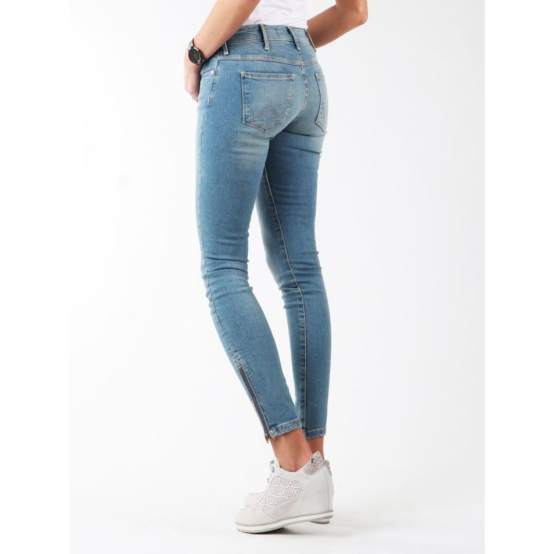 Dámské džíny se zúženými nohavicemi. Kapsy na přední i zadní straně. Kožená vsadka s logem Wrangler na zadním pásu. Kalhoty jsou přiléhavé, pružné a obepínají postavu. Na vnější straně nohavic je ve spodní části 14cm zip.