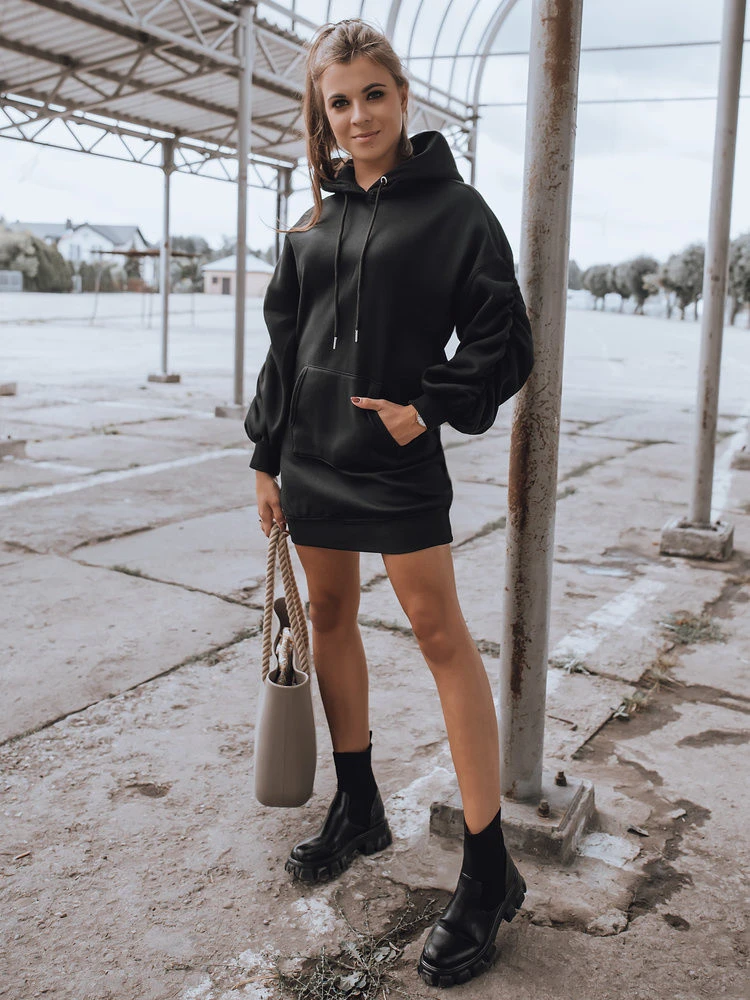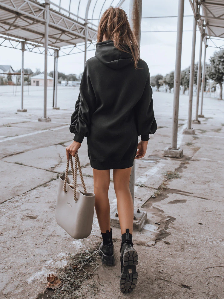 Mega stylové šaty od EASSY jsou must have pro ženy, které ocení pohodlí a komfort. Oversized střih, se kterým se nebudete moci rozloučit, originální rukávy s žebrovanými manžetami, kapuce, klokaní kapsa na předním díle, ideální pro každodenní styling, nosit jako mikinu nebo šaty, je to na vás! Doporučujeme!