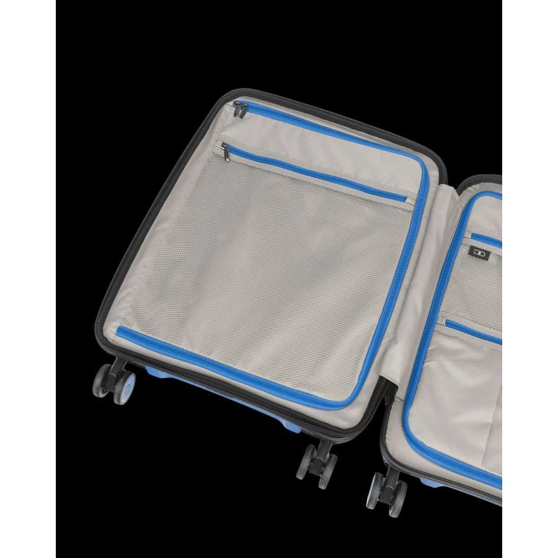 - Rozměry kufru umožňují, aby se s ním dalo volně pohybovat po letišti a aby mohl být uložen pod sedadlem nebo v horní přihrádce letadla.