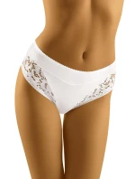 Bavlněné kalhotky s prolamovaným zdobením kolem stehen. Mírně vyšší, klasický střih, velmi pohodlné. Prolamovaný vzor opticky zeštíhluje linii boků. Polský výrobce.