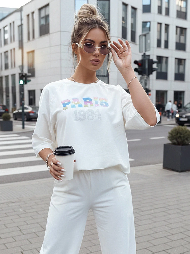 Podtrhněte svou osobnost se soupravou MILEKAN, kde se moderní potisk snoubí s klasickými střihy. Tričko s krátkým rukávem a kulatým výstřihem je kvintesencí každodenní elegance, široké kalhoty dodávají siluetě lehkost a praktické kapsy jsou dokonalou kombinací funkčnosti a módního designu. Zvolte si soupravu MILEKAN a dopřejte si luxus každodenního pohodlí, aniž byste ztratili svou elegantní povahu.