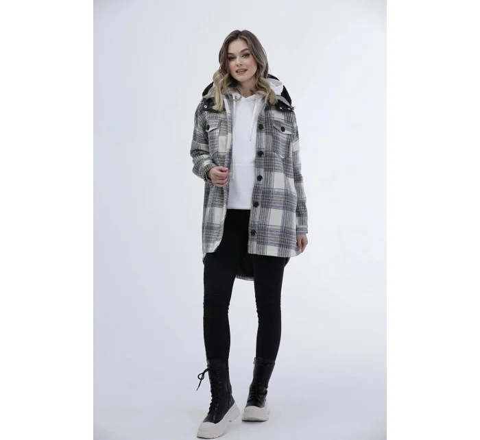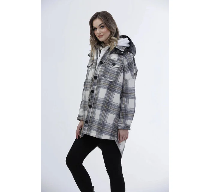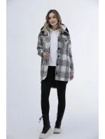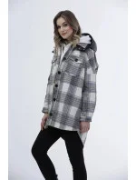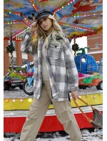 Přidání recenze k Ecru/šedá dámská károvaná košilová bunda (AG3-1813)