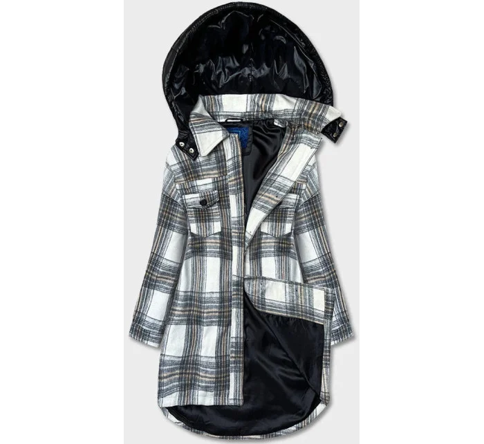 Ecru/šedá dámská károvaná košilová bunda (AG3-1813)