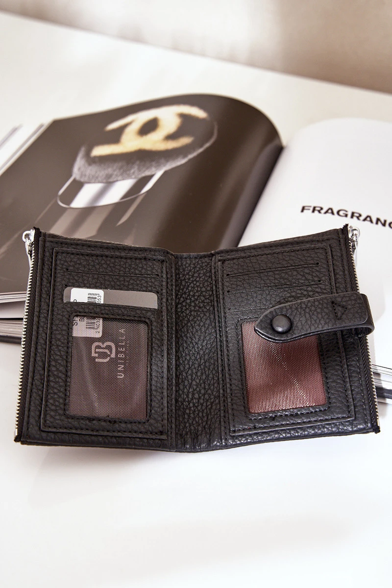 Elegantní dámská peněženka vyrobená z eko kůže. Tento model má dvě kapsy na zip, které zajišťují bezpečné uložení. Uvnitř je prostor na bankovky, karty a místo na fotografii. Ideální doplněk na každý den, také skvělý jako dárek.