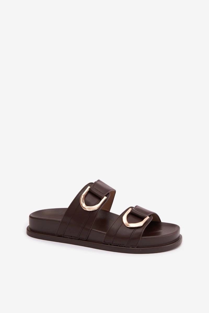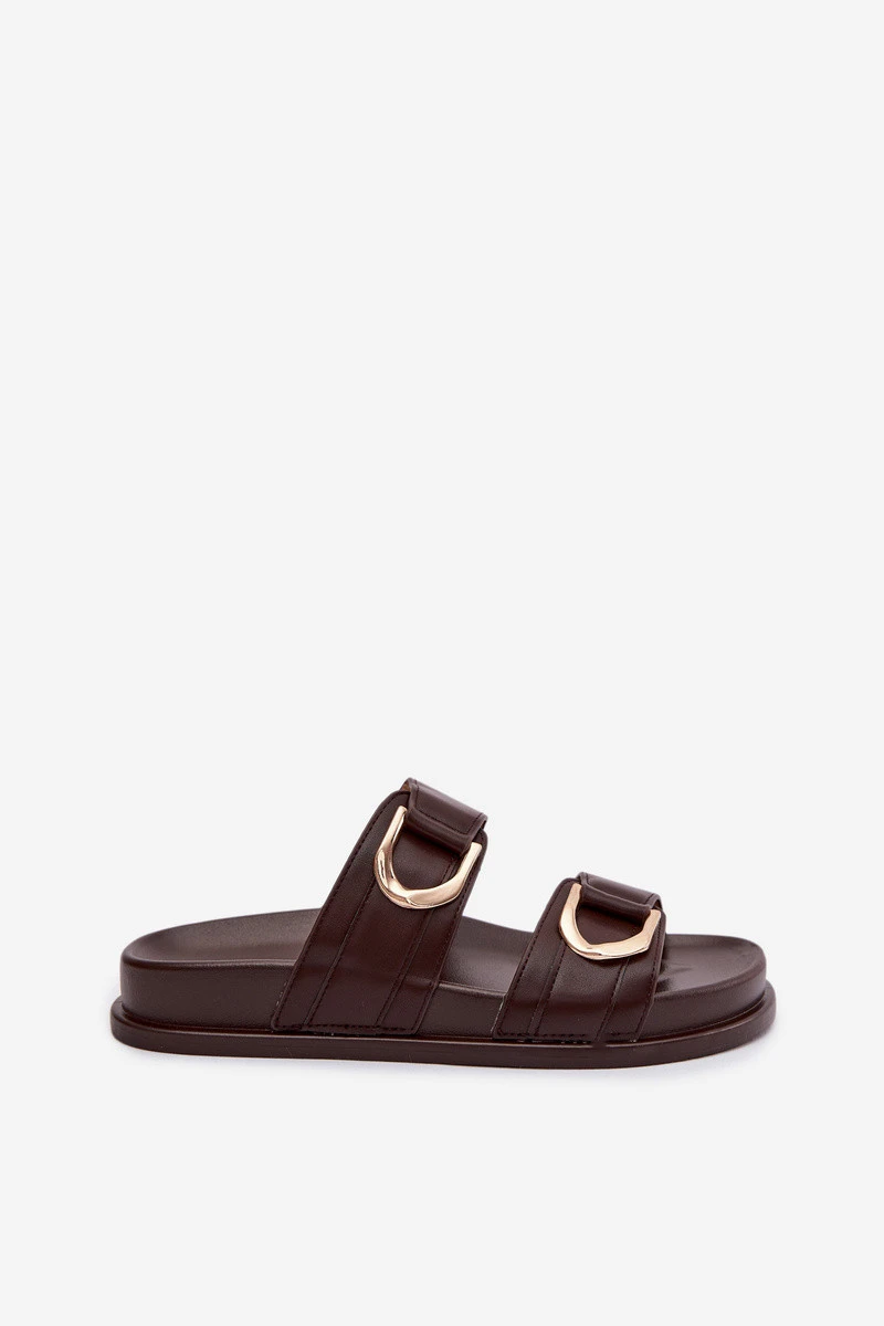 Eko kožené dámské pantofle s pásky čokoládové Rosinessa