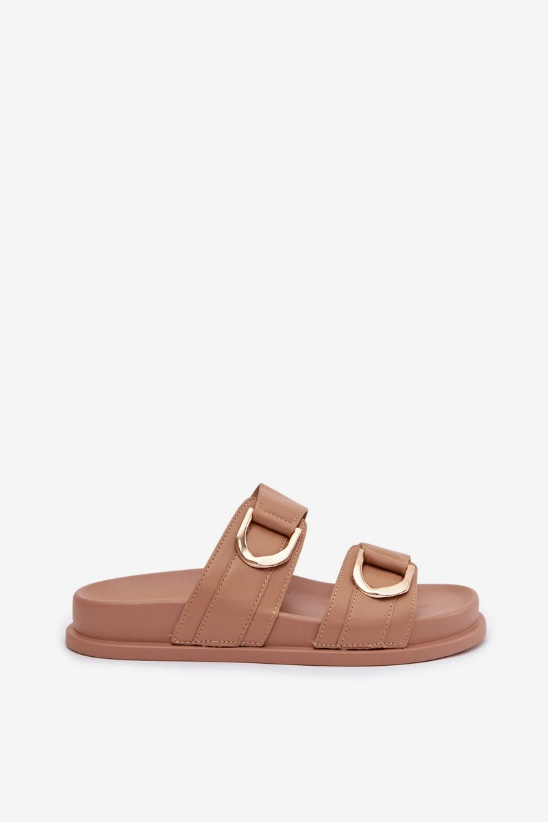 Eko kožené dámské pantofle s pásky tmavě béžové Rosinessa