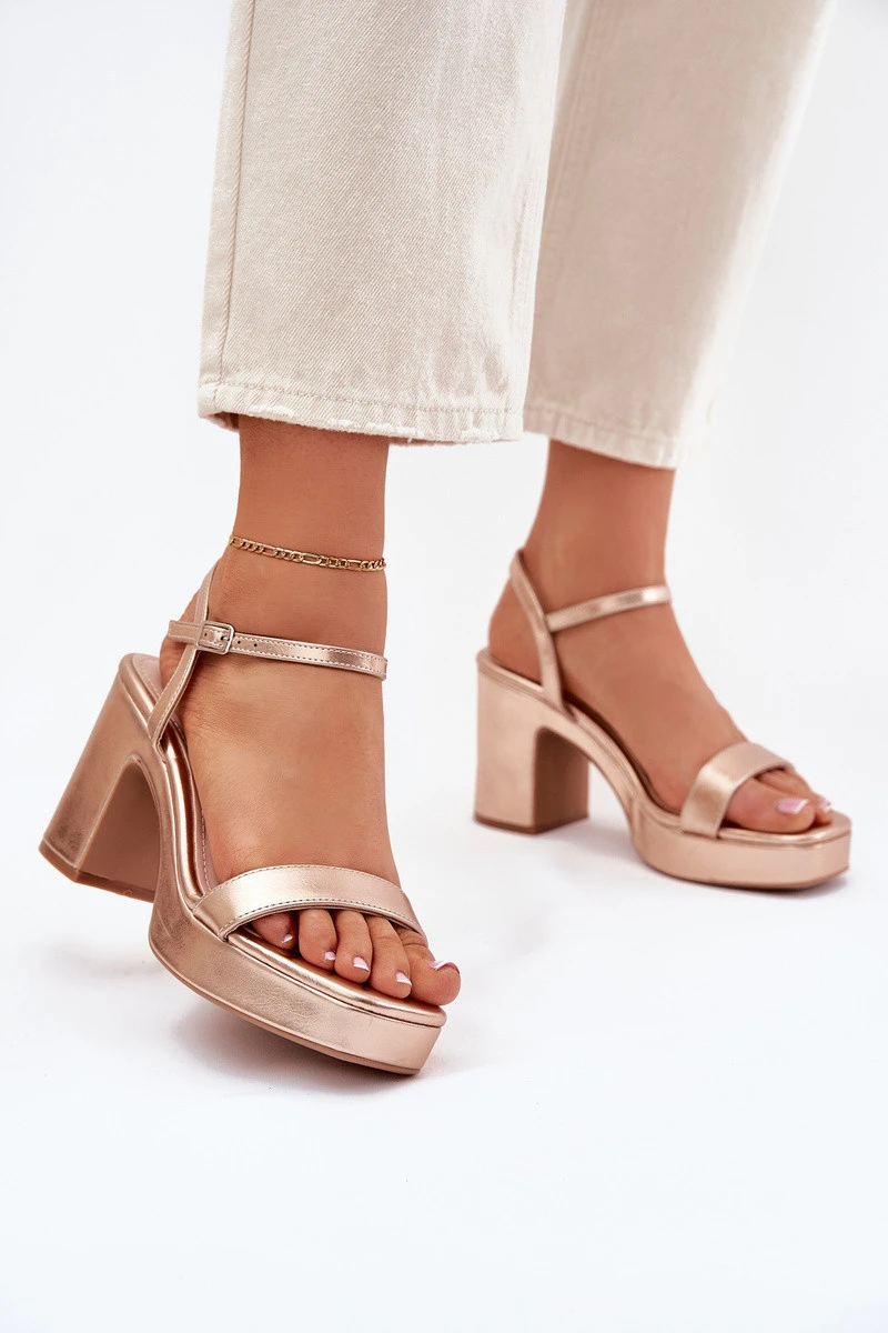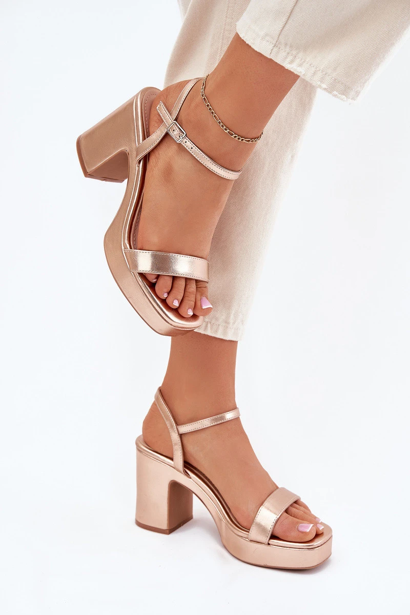 Přidání recenze k Eko Kožené Sandály Na Podpatku Růžové Zlato Lillita