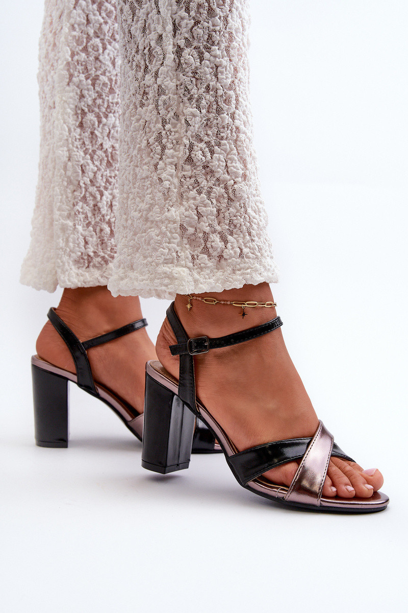 Eko Kožené Sandály Na Podpatku Sloupku Černé Abilica