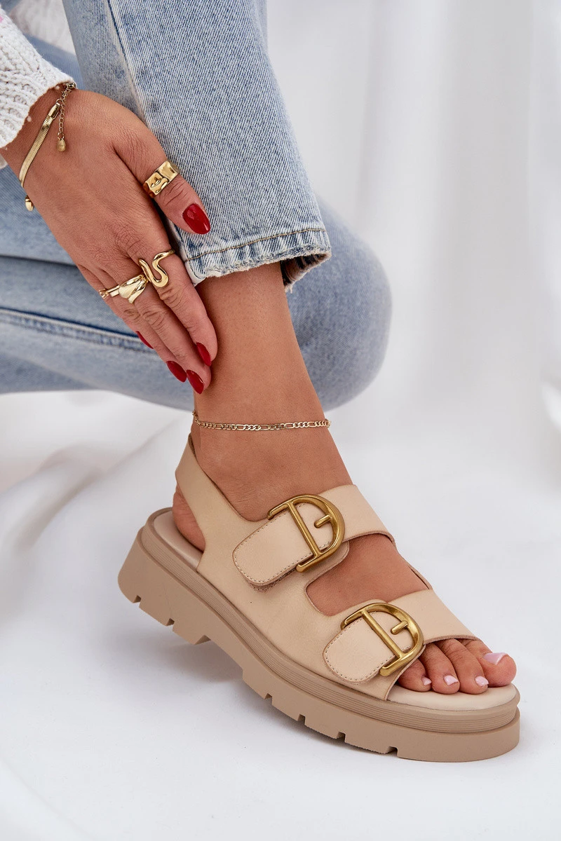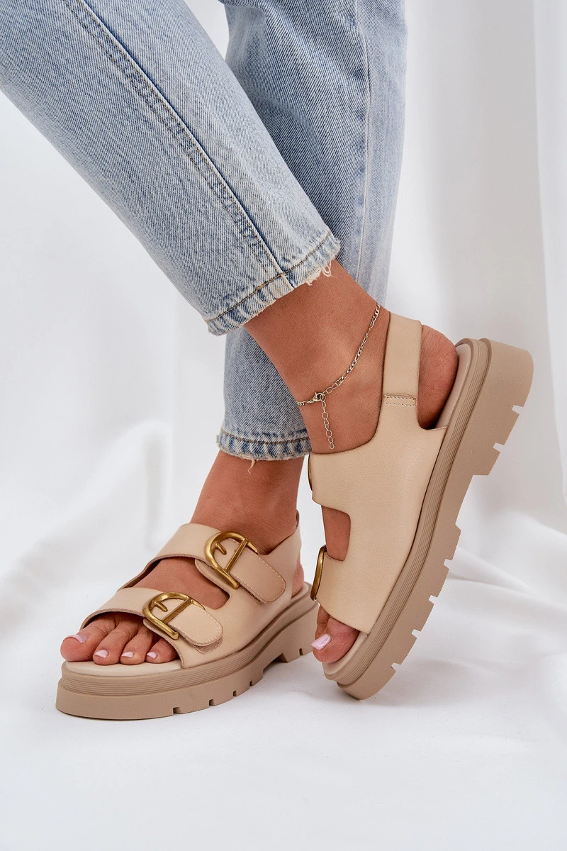 Eko kožené sandály s přezkami béžové model 21684627 - Boto
