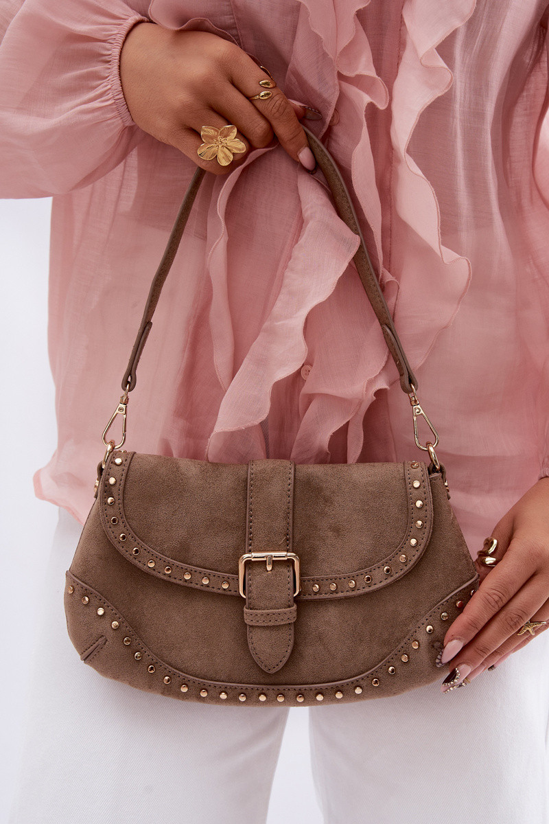 Eko semišová kabelka s cvočky tmavě béžová model 22111542 - Flora&Co