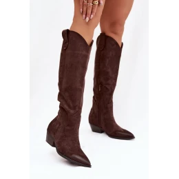Eko Semišové Kozačky Dámské Na Podpatku Čokoládové model 21821821 - Boto