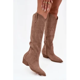 Přidání recenze k Eko semišové kozačky kovbojky dámské na podpatku béžové model 21715434 - Boto
