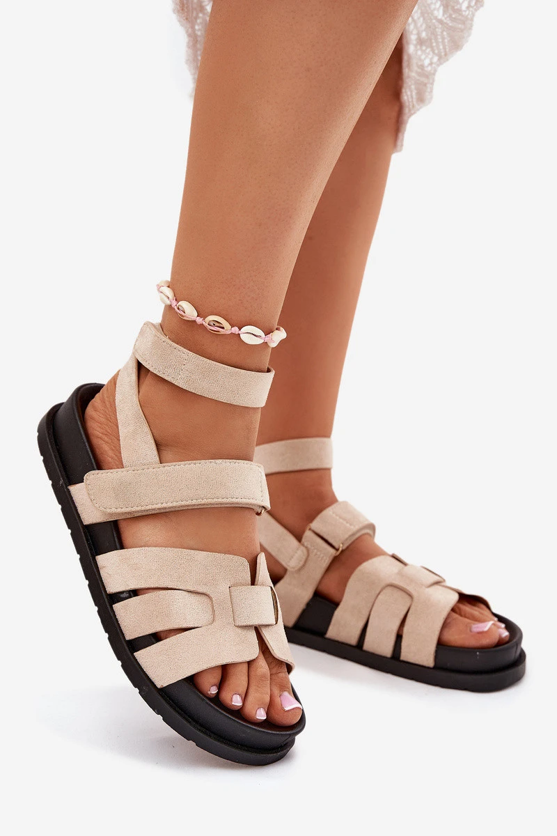 Dámské sandály vyrobené z eko zamšové kůže, usazené na jemné platformě, jsou skvělou volbou na letní dny. Zapínání na dvojitý suchý zip zajišťuje snadné přizpůsobení noze. Model se vyznačuje páskem obepínajícím nohu, který jim dodává výjimečný charakter. Ideální pro každodenní styling, spojují komfort s módním vzhledem. Při výběru velikosti se řiďte tabulkou velikostí.