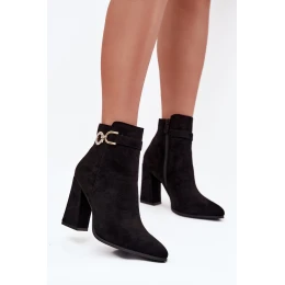 Eko Zamszové Kotníkové Boty Na Podpatku S Ozdobou Černé Lymall