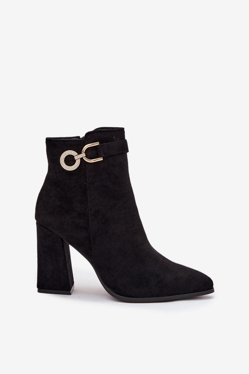 Eko Zamszové Kotníkové Boty Na Podpatku S Ozdobou Černé model 21708270 - Boto