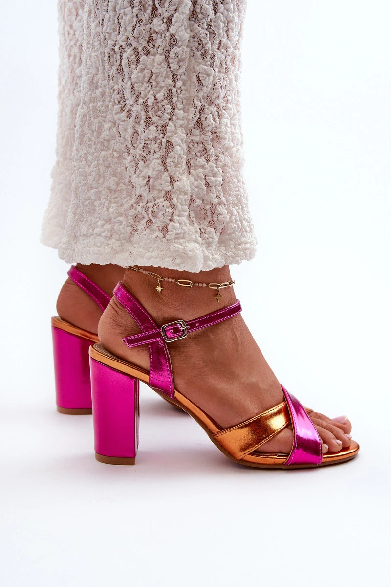 Ekologické kožené sandály na vysokém podpatku fuchsie Abilica
