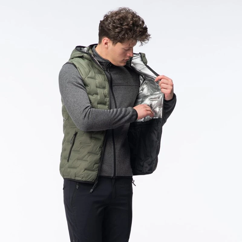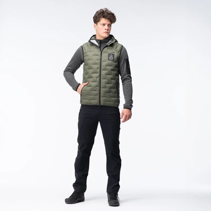 Pánská prošívaná vesta HUEL VEST PRIMALOFT® značky Elbrus byla vytvořena s použitím syntetické výplně Primaloft® Silver Insulation Thermoplume® s technologií Cross Core™, která zvyšuje úroveň tepelného komfortu v chladných dnech. Konstrukce výplně je podobná peří, zároveň je lehká a stlačitelnější. Svařované panely se syntetickou izolací zabraňují jejímu pohybu uvnitř. Tento model má integrovanou zateplenou kapuci, která vás ochrání před poryvy větru. Dvě boční kapsy vám poskytnou potřebný úložný prostor pro drobnosti. Další výhodou vesty HUEL VEST je její vnitřní tepelně reflexní úprava.