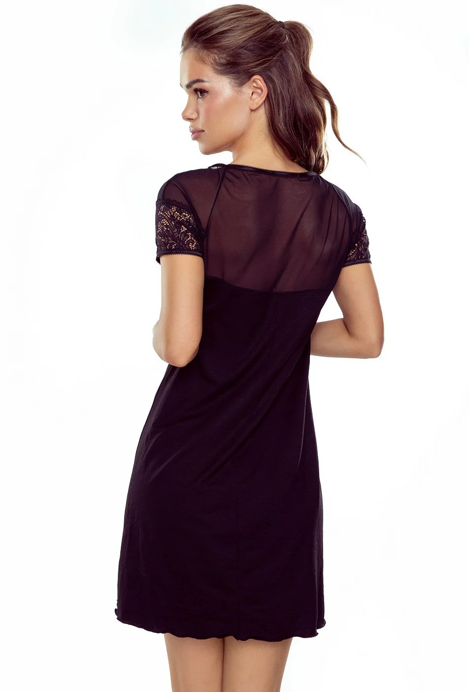 - výstřih a rukávy z krajky a tylové síťoviny