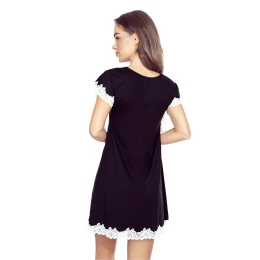 - výstřih, rukávy a rozparek z krajky s květinovým vzorem