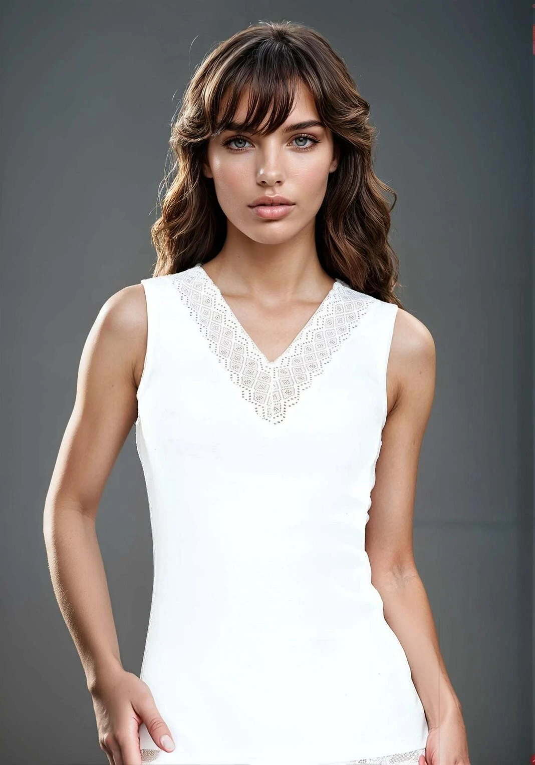 - výstřih a záda ve tvaru písmene V, zdobené krajkou s prolamovaným vzorem