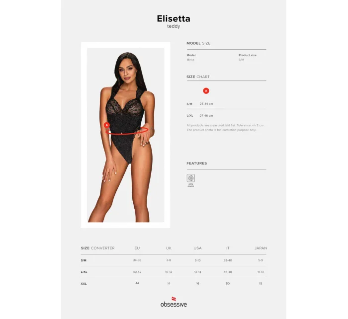 Produkt Elegantní body Elisetta teddy - Obsessive prodáváme v těchto velikostech: L/XLa barvách černá5901688232460