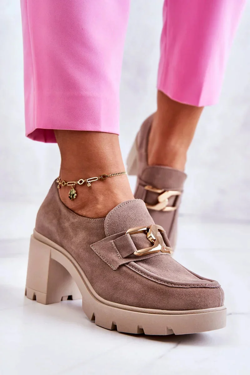 Nádherné boty na vysokém podpatku se svrškem z přírodní semišové kůže. Vnitřek je potažen přírodní kůží a textilním materiálem, díky čemuž se velmi pohodlně používají. Stélka je vyrobena z přírodní kůže a podešev je vyrobena z pryžového materiálu. Stylový podpatek v podobě širokého sloupku zajistí stabilitu na každém kroku. Zrcadlový ornament na přední straně. Podpatek je vyztužený. Pod jazykem je navíc gumička, díky které bota perfektně sedne na nohu. Při výběru velikosti použijte tabulku velikostí.