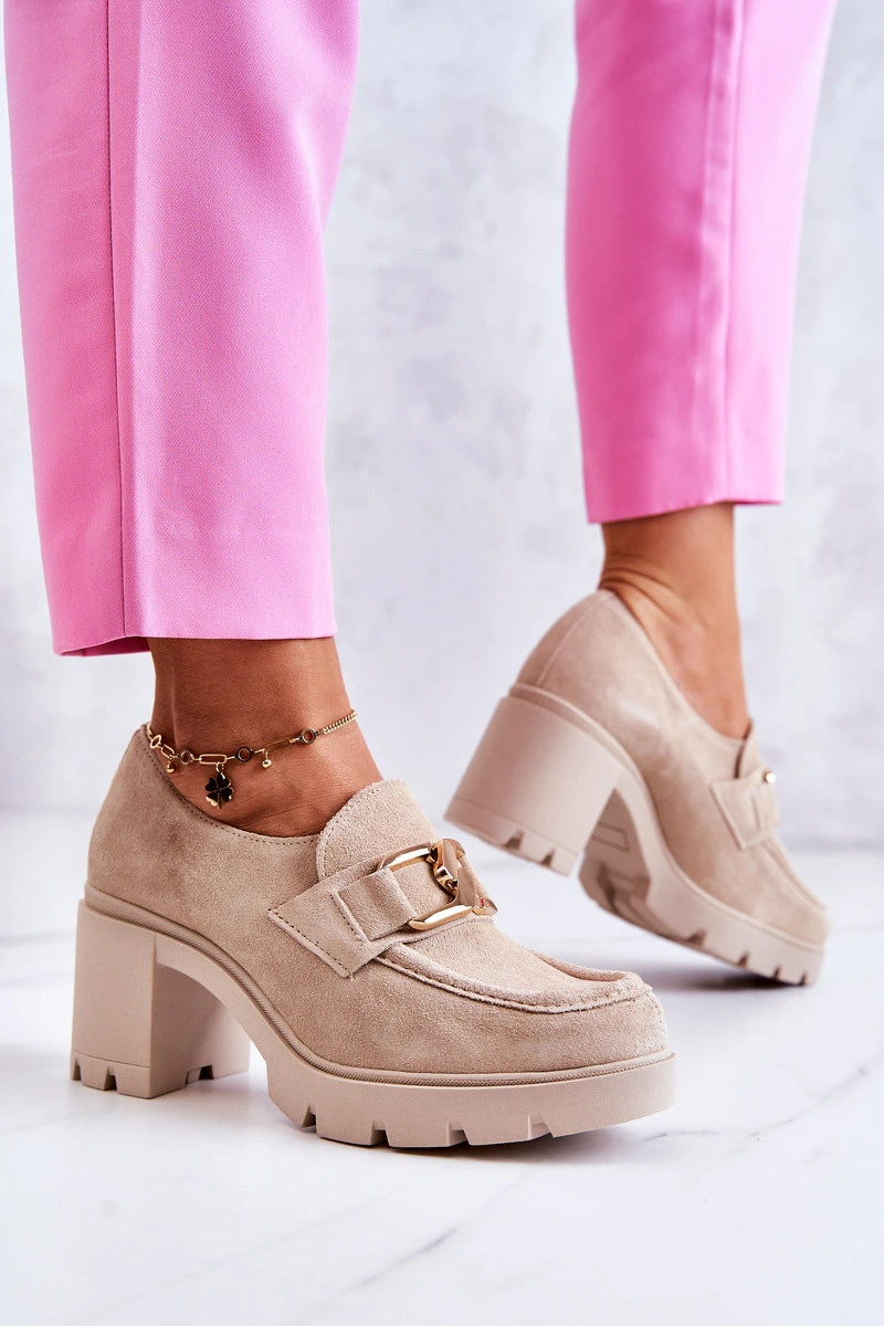 Elegantní boty se zlatým zdobením Světle béžová model 21583105 - Boto