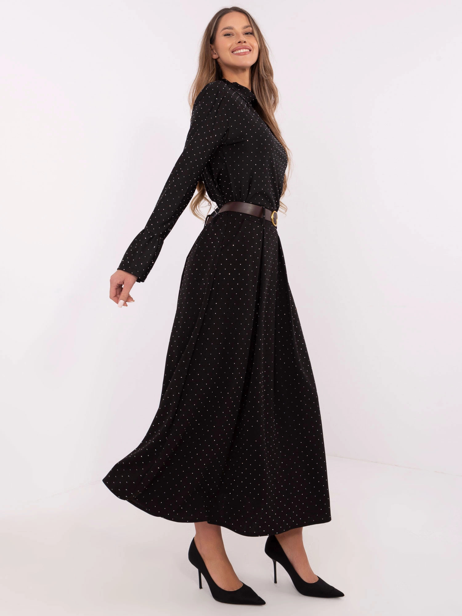 Elegantní černá maxi sukně v ozdobném provedení (19720)