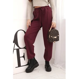 Elegantní dámské kalhoty s vysokým pasem a vázáním v pase bordó