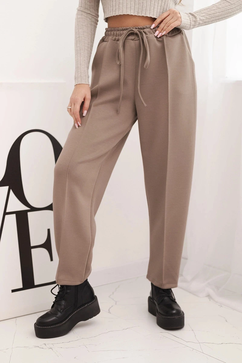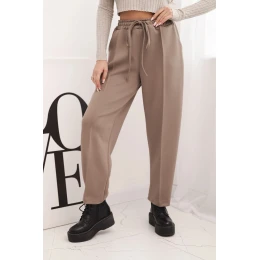 Elegantní dámské kalhoty s vysokým pasem a vázáním v pase fango