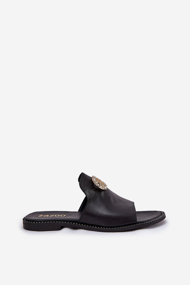 Elegantní Dámské Kožené Pantofle S Dekorací model 21686268 Černé - Zazoo