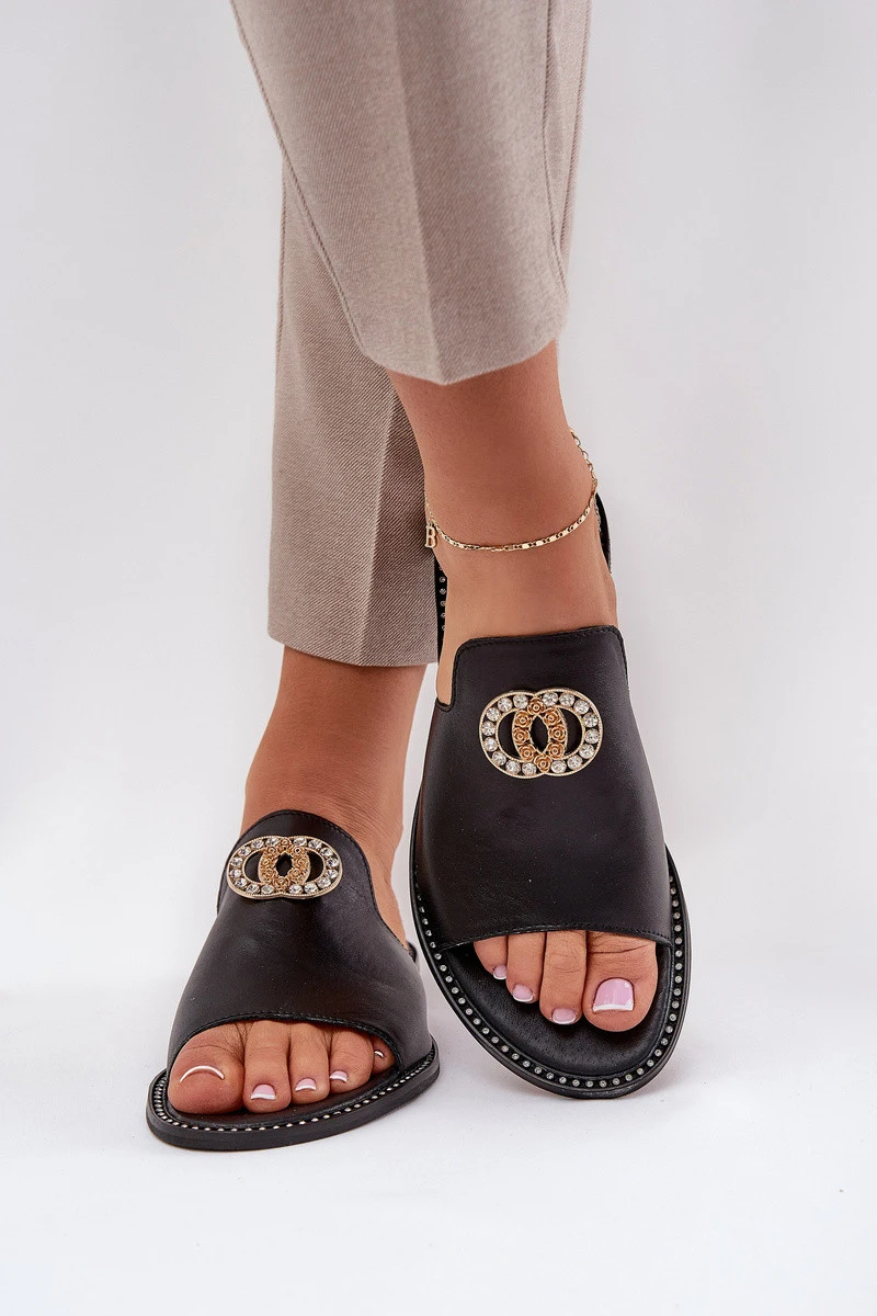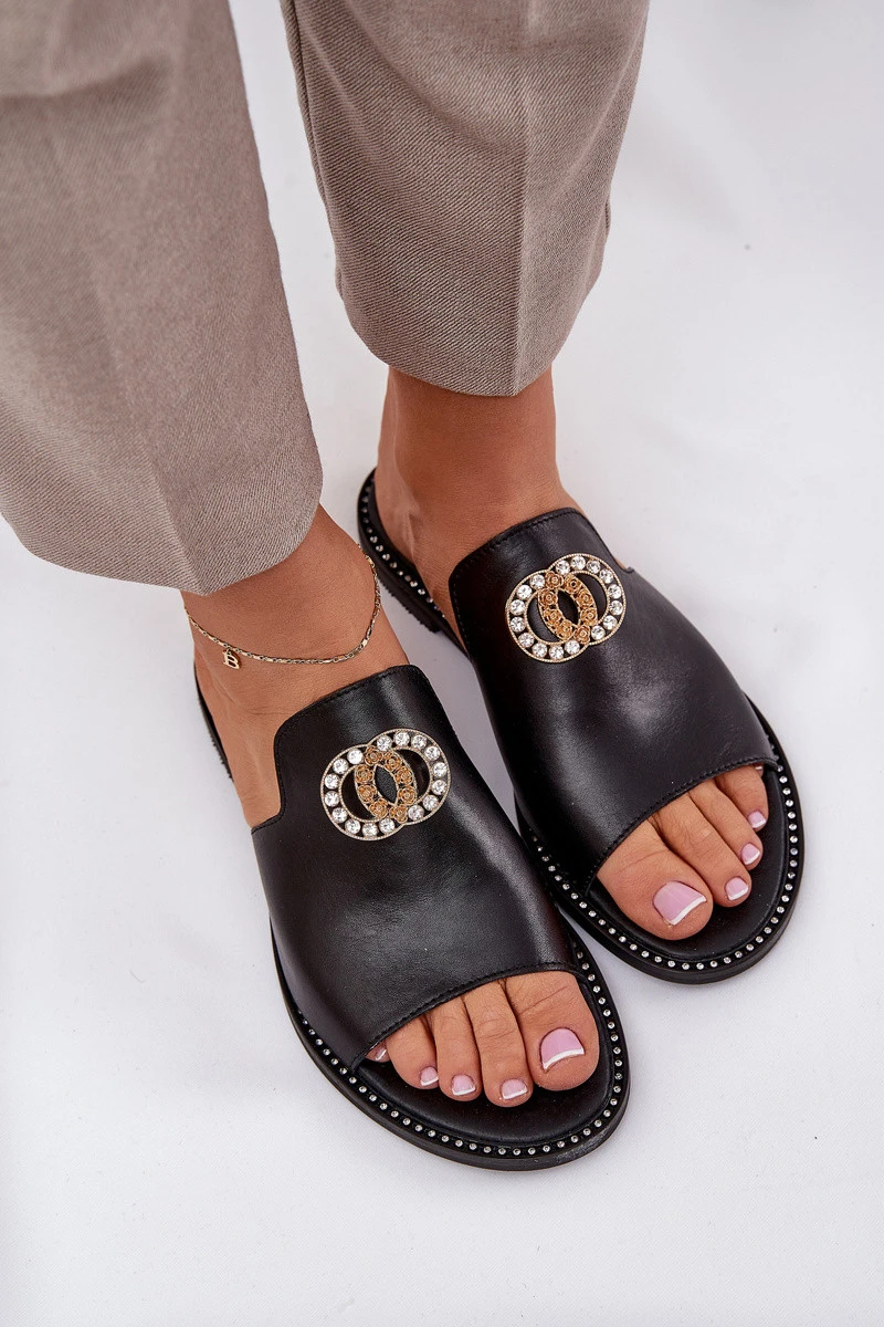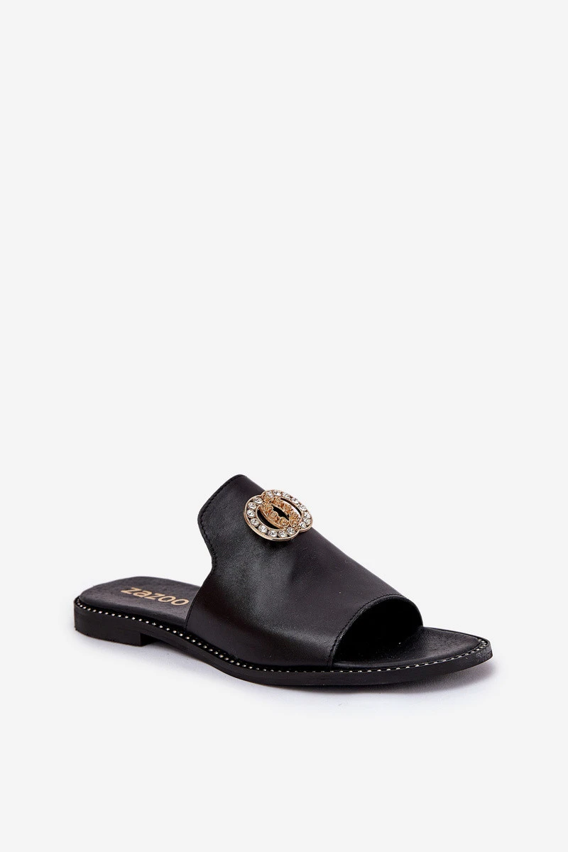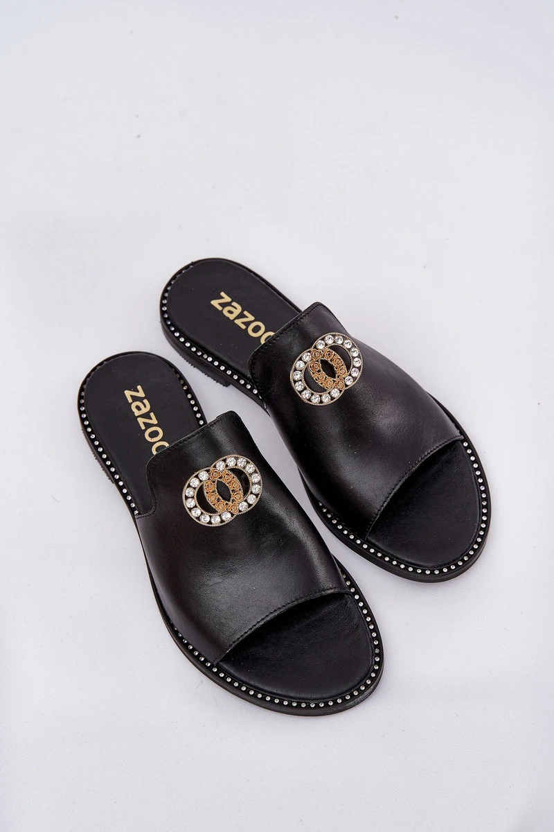 Elegantní Dámské Kožené Pantofle S Dekorací Zazoo 3008 Černé