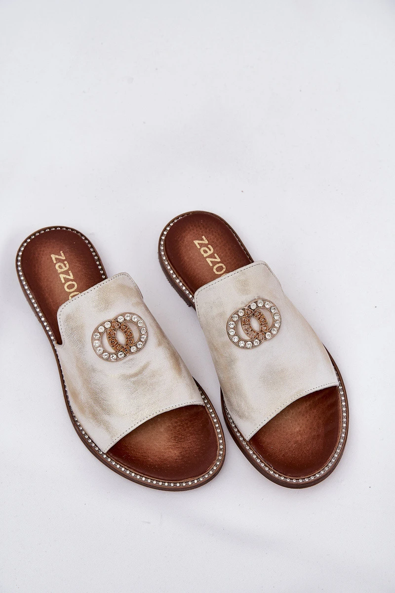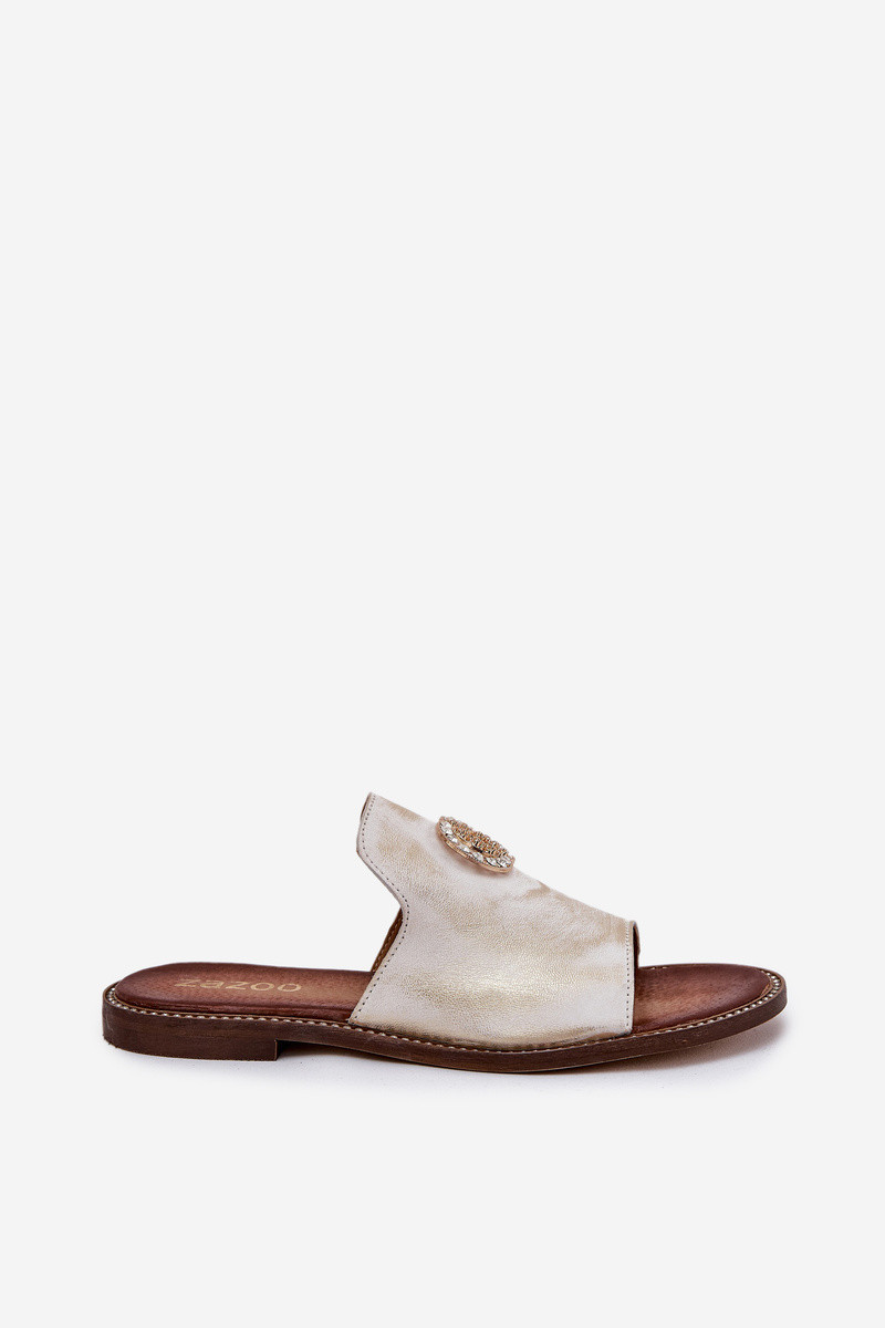 Elegantní Dámské Kožené Pantofle S Dekorací Zlatý model 21686276 - Zazoo