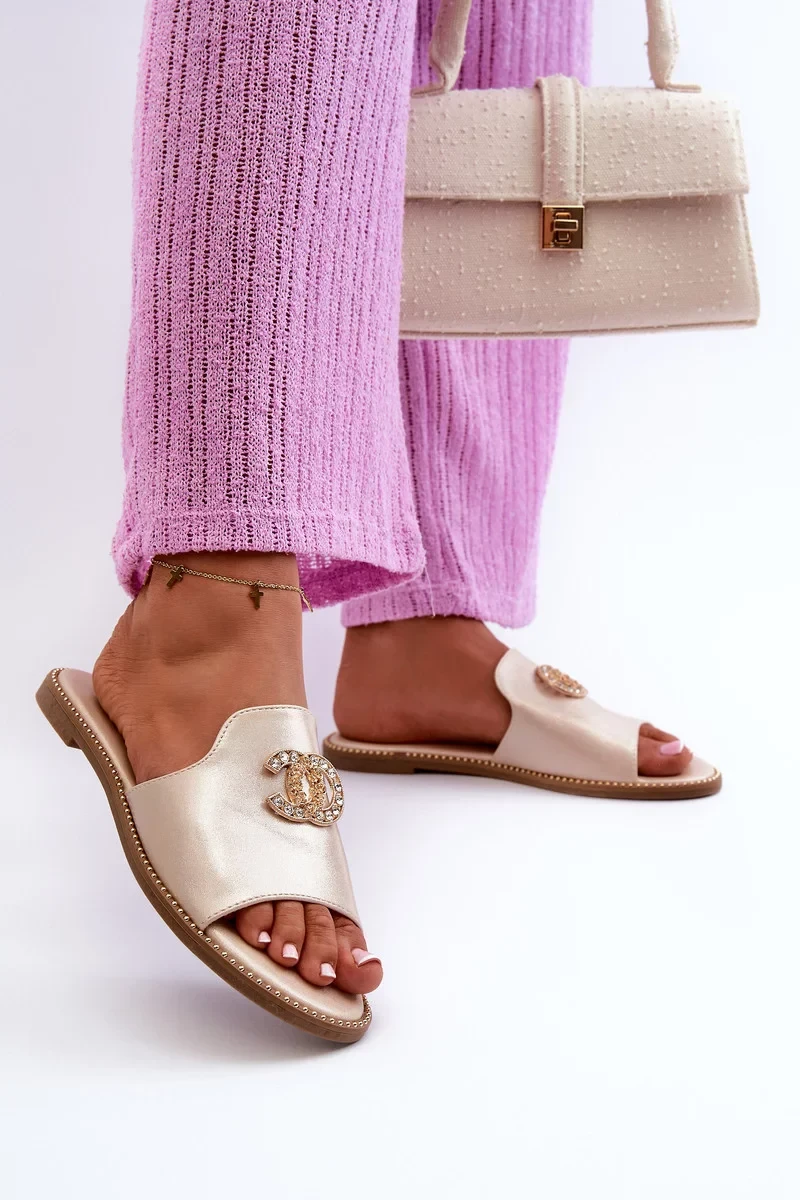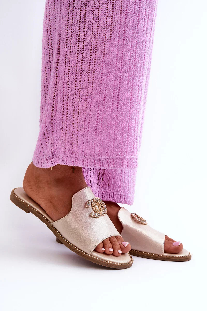 Elegantní dámské lesklé pantofle s ozdobou.Barski Gold