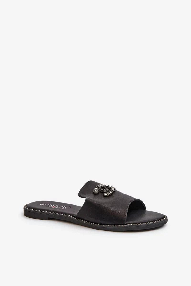 Elegantní dámské lesklé pantofle s ozdobou S.Barski Černá