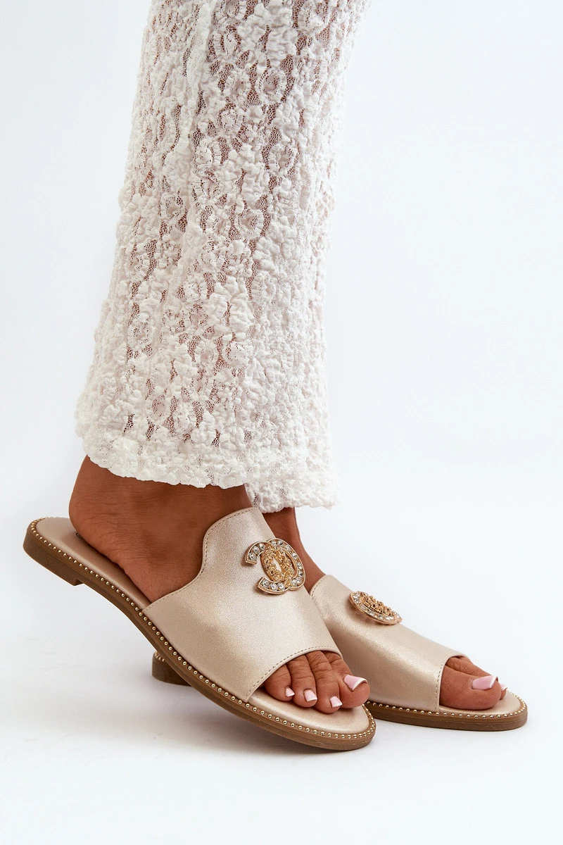Elegantní Dámské Lesklé Sandály S Ozdobou model 21665136 Zlaté - S.Barski
