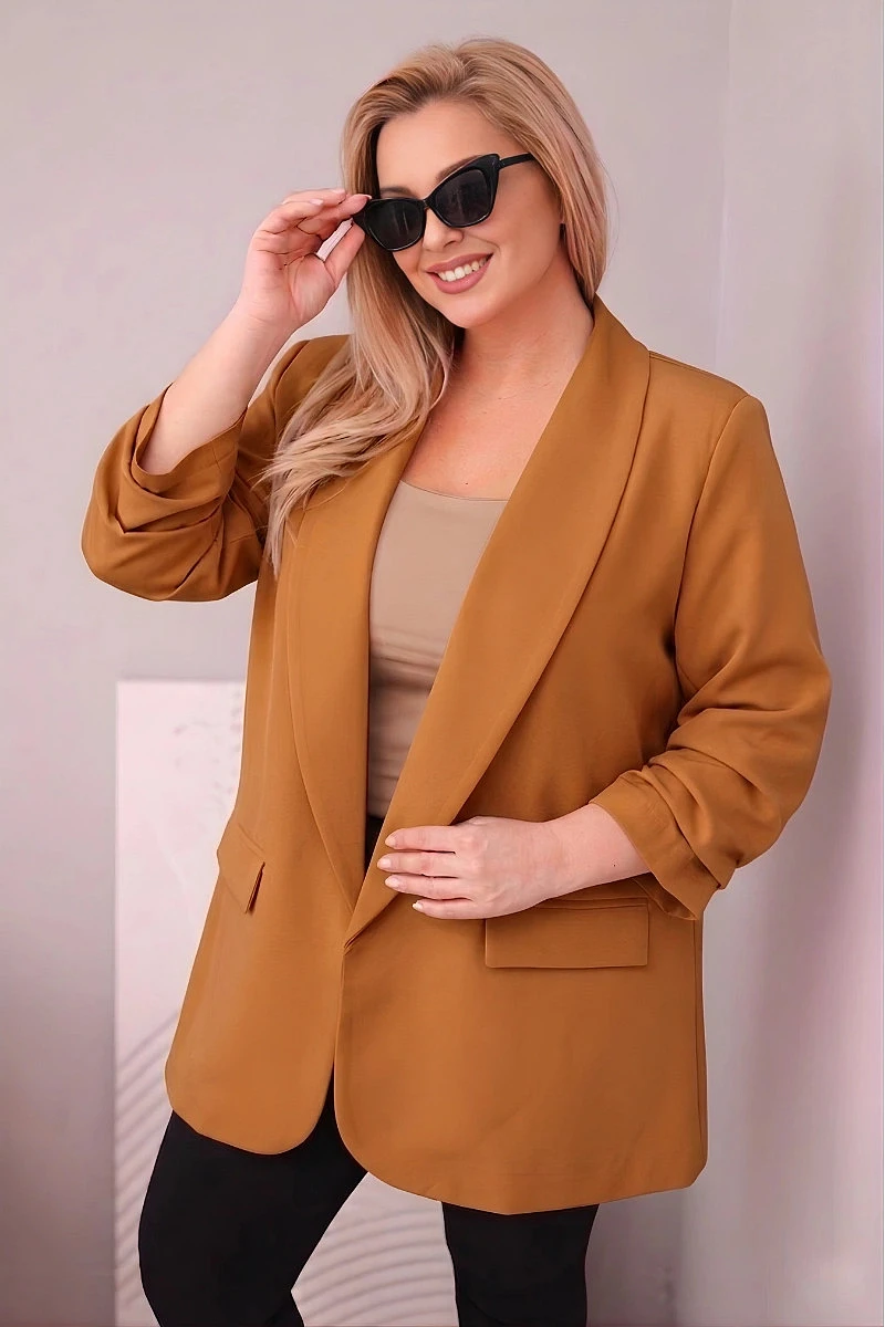 Elegantní dámské sako Plus Size tmavě model 22103459 - K-Fashion