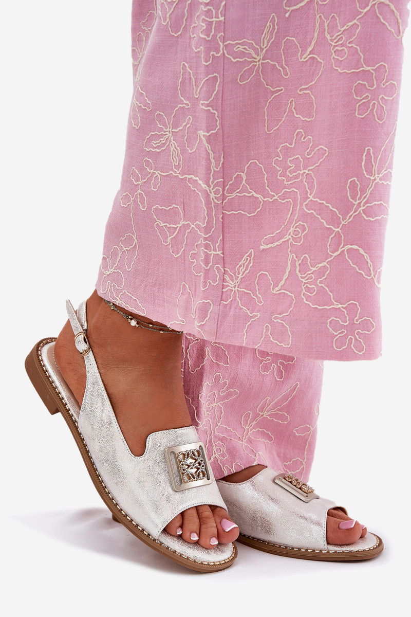 Elegantní Dámské Sandály Na Plochém Podpatku S Dekorací S.Barski KV51-082 Stříbrné