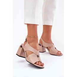 Elegantní Dámské Sandály Na Podpatku model 21695150 Béžové - VINCEZA